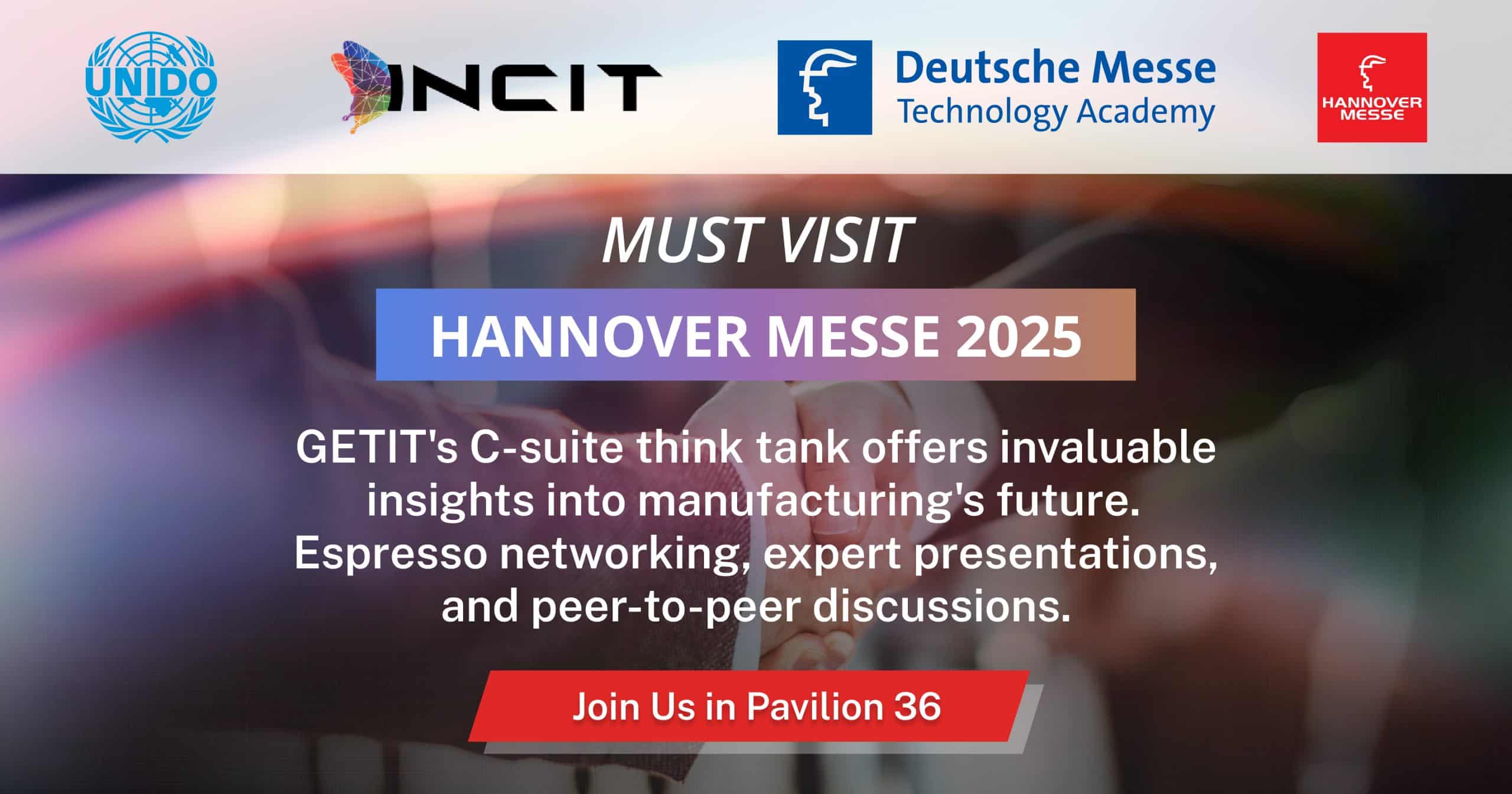 GETIT ialah peluang anda untuk berhubung dengan rakan sebaya, memperoleh cerapan yang boleh diambil tindakan dan menjadi sebahagian daripada perbincangan transformatif yang memacu masa depan pembuatan. Jangan lepaskan peluang untuk menghadiri acara yang wajib dihadiri ini —sertai kami di Hannover Messe, Pavilion 36, untuk hari inspirasi, kerjasama dan perancangan strategik yang akan membentuk industri masa depan.