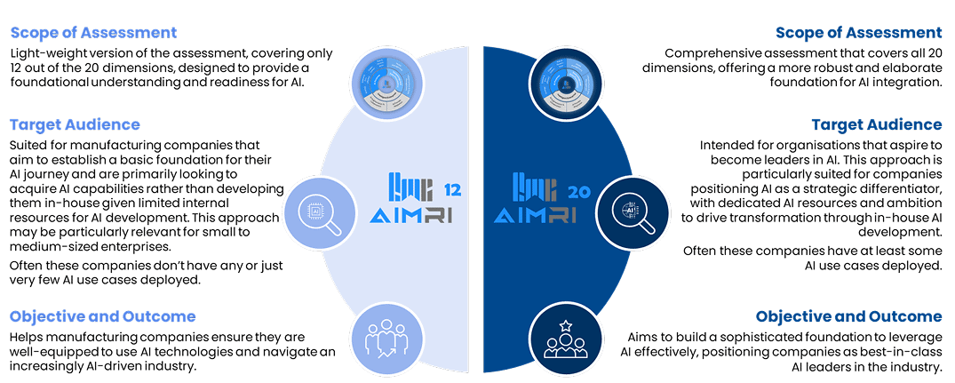 Comprehensive assessment that covers all 20 dimensions, offering a more robust and elaborate foundation for Al integration.