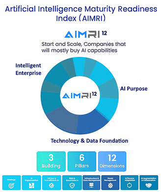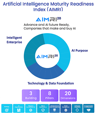 Artificial Intelligence Maturity Readiness Index (AIMRI) is a framework used to measure how prepared an industry is to adopt and implement AI technologies effectively. It evaluates factors like AI Purpose, Technology & Data Foundation and Intelligent Enterprise captured in the Framework as 3 Building Blocks and then detailed into 10 Pillars and 20 Dimensions.